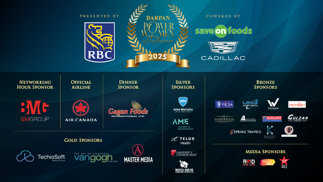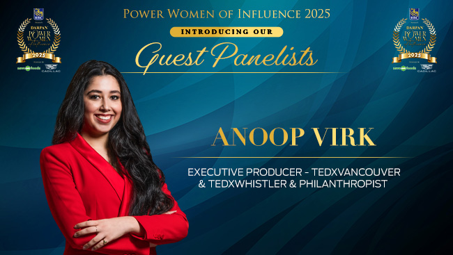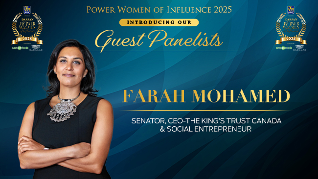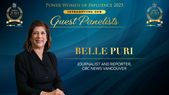 The Power Women of Influence Gala 2025 comprises of a power-packed panel that includes Roshaneh Zafar, Founder and MD, Kashf Foundation, Farah Mohamed, Senator, CEO-The King's Trust Canada, and social entrepreneur, Belle Puri, veteran award winning journalist and reporter with CBC News Vancouver, Anoop Virk, TEDx executive producer and Ambassador for the Minerva Women’s Foundation, and Supinder Wraich, award winning Canadian actress of CBC's Allegiance.